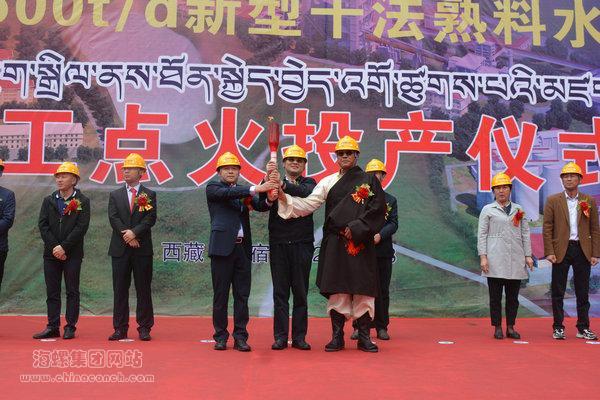 昌都市魏東副書記、八宿縣尼瑪江村縣長(zhǎng)、海螺水泥川渝區(qū)域負(fù)責(zé)人張來輝共同接力主火炬