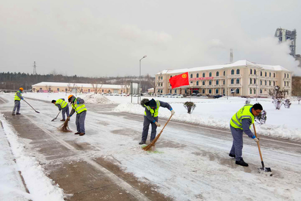 公司啟動應(yīng)急預(yù)案,多次召開會議部署防范應(yīng)對措施,提前落實了設(shè)備保溫防凍工作,對裝卸貨環(huán)節(jié)和廠內(nèi)機動車輛加強安全管理、封閉巡檢廊道、樓梯危險路段、對原材料大棚實施定時觀測,并對廣大提貨客戶發(fā)布安全提醒。公司組織黨員突擊隊,帶領(lǐng)員工對廠區(qū)、后勤道路進行積雪清掃,以實際行動踐行“兩學(xué)一做”要求,有效保障了廠區(qū)主要道路安全通暢。