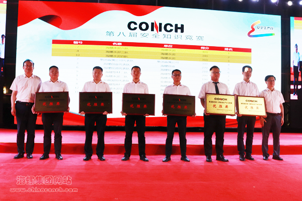 經(jīng)過兩個(gè)小時(shí)的精彩角逐,海螺水泥六隊(duì)摘得桂冠,海螺水泥三隊(duì)、海螺水泥四隊(duì)榮獲第二名,集團(tuán)直屬公司代表隊(duì)、海螺創(chuàng)業(yè)代表隊(duì)、海螺投資代表隊(duì)獲得三等獎(jiǎng),其他6支代表隊(duì)獲得優(yōu)勝獎(jiǎng)。荻港海螺、重慶海螺、海門海螺、寧波型材、新材料咸陽公司獲“安全知識(shí)測試最佳組織單位”。