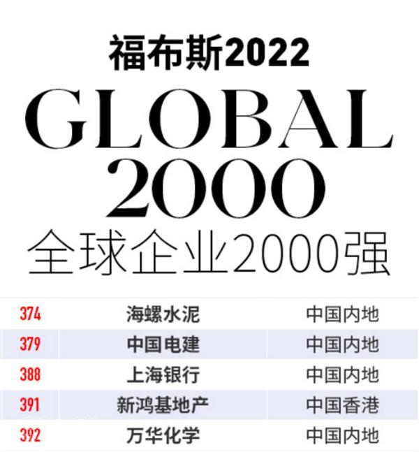 據(jù)福布斯5月12日最新發(fā)布的2022全球企業(yè)2000強(qiáng)榜單,海螺水泥再次上榜,位列374位。