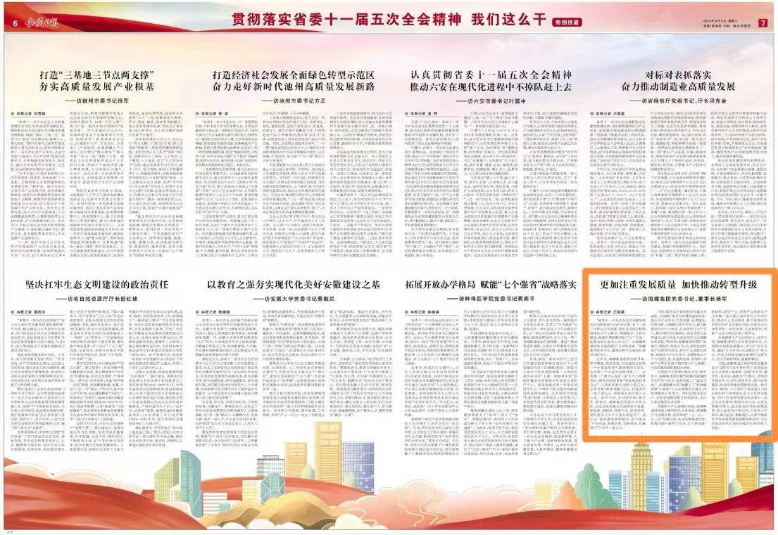 《安徽日?qǐng)?bào)》貫徹落實(shí)省委十一屆五次全會(huì)精神特別報(bào)道,專訪海螺集團(tuán)黨委書(shū)記、董事長(zhǎng)楊軍。