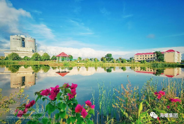 走進(jìn)馬德望海螺廠區(qū),綠水環(huán)繞,青山相倚,花草掩映成趣,人工湖埂和綠植共同組成的“CONCH”標(biāo)志在衛(wèi)星圖中也十分明顯,巧妙的設(shè)計(jì)使得自然和人文景觀相融極具特色,湖中成群的野鴨游過,一幅人與自然和諧共生的美麗畫卷徐徐展開。
