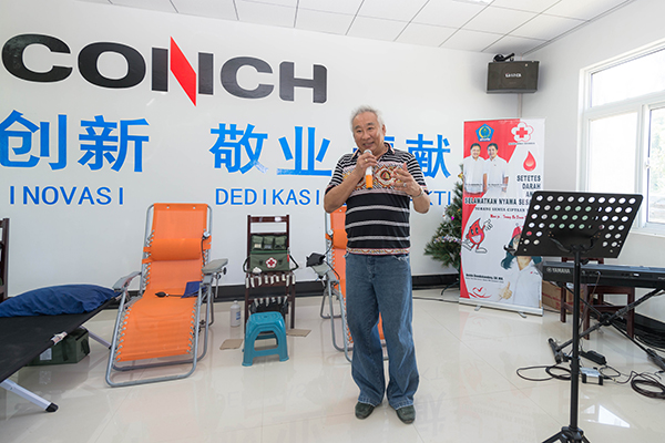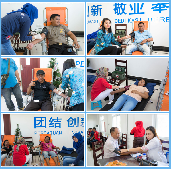 ??? 活動(dòng)持續(xù)到下午四點(diǎn),通過(guò)體檢,獻(xiàn)血成功人數(shù)為51人。當(dāng)伸出手臂,看到鮮紅的血液流進(jìn)采血袋,拿到屬于自己的《獻(xiàn)血證》時(shí),參與無(wú)償獻(xiàn)血的員工臉上都露出了欣慰的笑容。紅十字會(huì)工作人員看到海螺員工如此的支持印尼公益事業(yè)、發(fā)揚(yáng)救死扶傷的人道主義精神,由衷的豎起了大拇指,在中國(guó)籍員工的帶領(lǐng)下,印尼籍員工、周邊村民也紛紛加入獻(xiàn)愛(ài)心行列。
