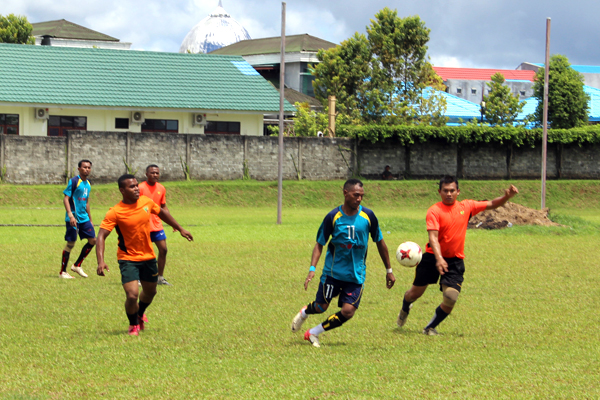 根據(jù)組委會抽簽結(jié)果,SPCI(西巴公司代表隊(duì))在第二場閃亮登場,對戰(zhàn)TIM GABUNGAN(馬諾夸里縣政府、西巴布亞省武警總隊(duì)、警察局以及西巴公司機(jī)關(guān)聯(lián)合隊(duì)),場上隊(duì)員不分國籍,配合默契,那滿場飛奔、生龍活虎般的矯健身影,那嫻熟的鏟斷、撲救動作,在充分展示西巴公司團(tuán)結(jié)奮進(jìn)、活力四射的同時(shí),也將足球的魅力展現(xiàn)得淋漓盡致。