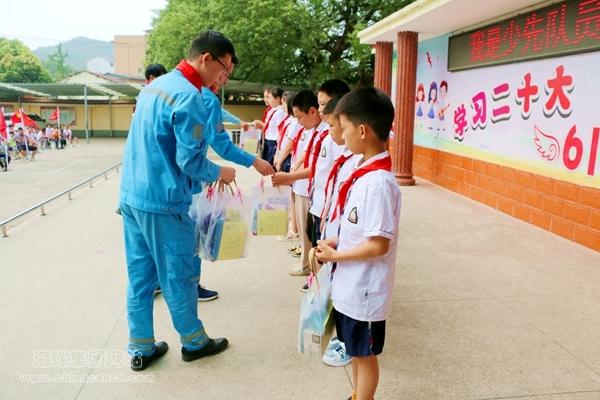 叮鈴鈴……,伴隨著下課鈴聲響起,孩子們像鳥(niǎo)兒一樣歡樂(lè)地飛奔操場(chǎng)玩耍,一群年齡稍大的孩子門(mén)一眼認(rèn)出了興安海螺的叔叔阿姨們。