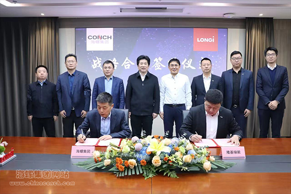 12月1日,海螺集團與隆基綠能簽署戰(zhàn)略合作協(xié)議并開展交流活動。隆基綠能董事長鐘寶申,隆基中國政企地區(qū)部總裁陳鵬飛,海螺集團黨委書記、董事長楊軍,海螺新材黨委副書記、總經理王楊林,海螺水泥總經理助理潘忠虹等出席并見證簽約儀式。