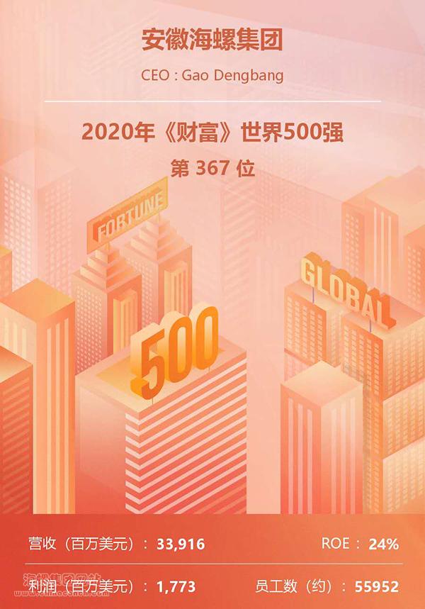 8月10日,《財(cái)富》雜志公布“2020世界500強(qiáng)企業(yè)”排名榜單,海螺集團(tuán)以339.16億美元的營業(yè)收入位居第367位,較2019年大幅提升74位?!敦?cái)富》同時(shí)發(fā)布了“2020年世界500強(qiáng)排名提升和下降最多公司”榜單,海螺集團(tuán)位居排名提升最多公司榜單第13位,在中國企業(yè)中排名第4。
