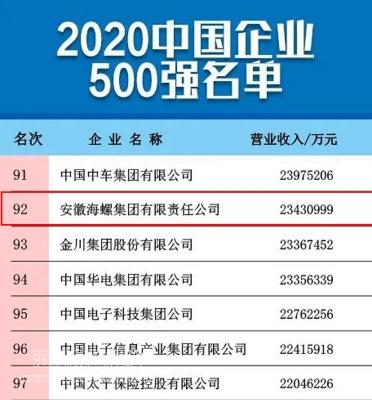海螺集團(tuán)連續(xù)16年入圍中國(guó)企業(yè)500強(qiáng),榮列2020中國(guó)企業(yè)500強(qiáng)第92位,較2019年上升了13位,首次邁進(jìn)前100強(qiáng),也終結(jié)了安徽省多年無(wú)企業(yè)進(jìn)入前100位的歷史;同時(shí),榮列2020中國(guó)制造業(yè)企業(yè)500強(qiáng)第30位,比2019年上升8位;榮列2020中國(guó)跨國(guó)公司100大第96位,比2019年上升2位。